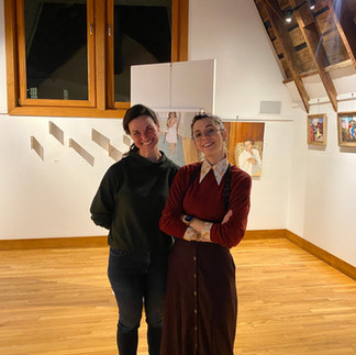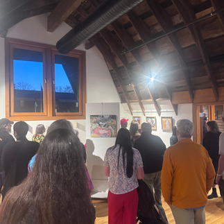 The evening unfolded gently. People arrived around six o’clock and began exploring the exhibition while conversations drifted through the gallery. At 6:30 we gathered around the television upstairs to watch a short film—spoken word paired with footage of the paintings coming into being. Immediately after, two new paintings were revealed for the first time.