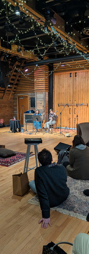 Cheri and friends began the musical portion of the night, filling the gallery with songs that felt both intimate and expansive. Between each piece, the music dissolved into layered soundscapes made from instruments, environmental recordings, and archived voices. During these moments, people moved slowly through the space, returning to the memory boxes or standing quietly with the paintings.